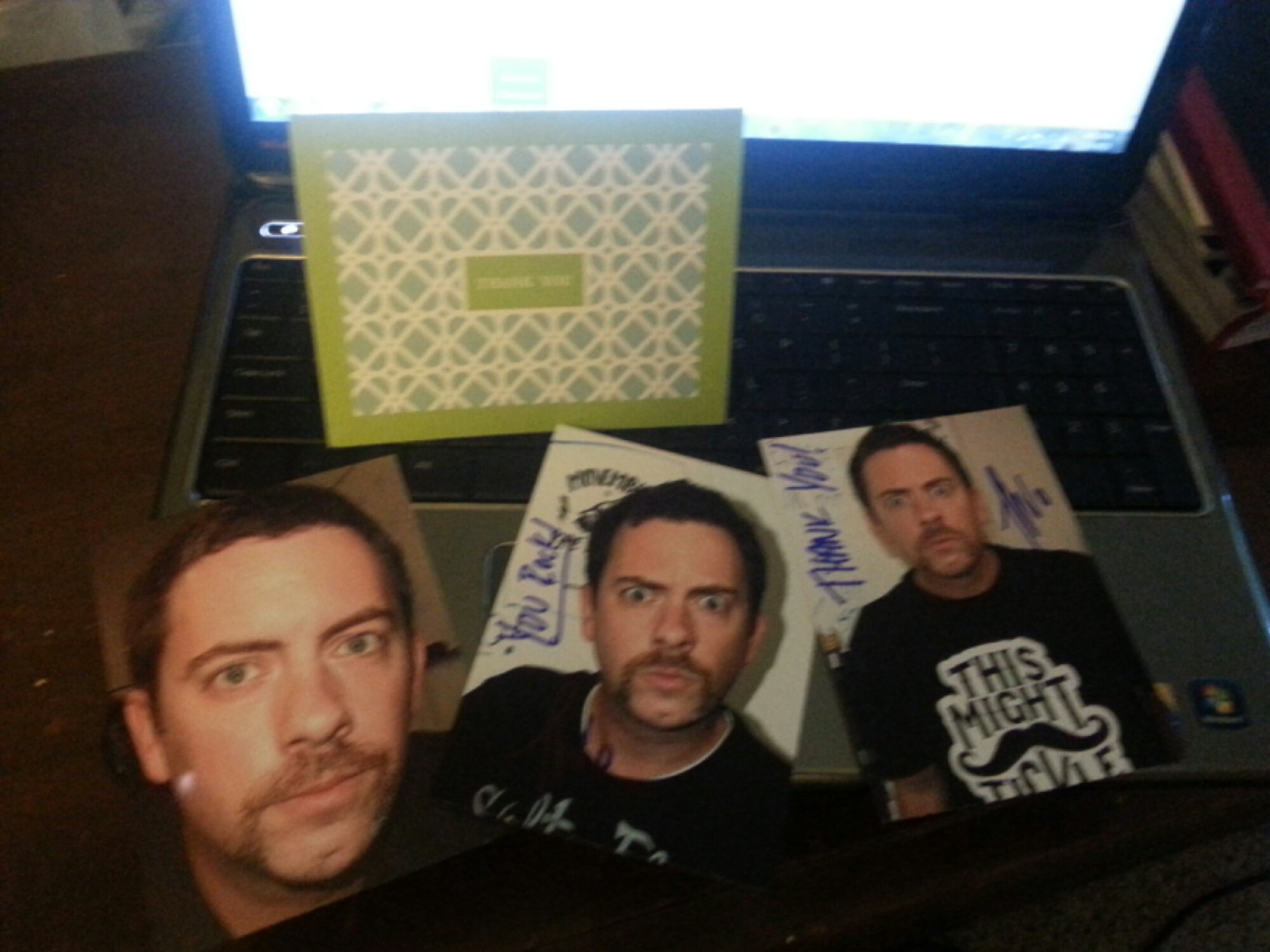 Hey boys and girls! Look what I got in the mail today from that stalker JWo! It’s my official thank you note for my Movember donation. I think it’s very nice that he took the time to send a personal, handwritten note, because I usually only get bills. And on top of thanking me for supporting his prostate region, er, uh, prostate cause he also included these sexy pictures to fuel my moustache ride fantasies! Next year can you and Chowderhead and about 10 other guys get together and do a whole calendar? But seriously, get your prostate checked!! Paging Ben Dover. . .Ben Dover. . .